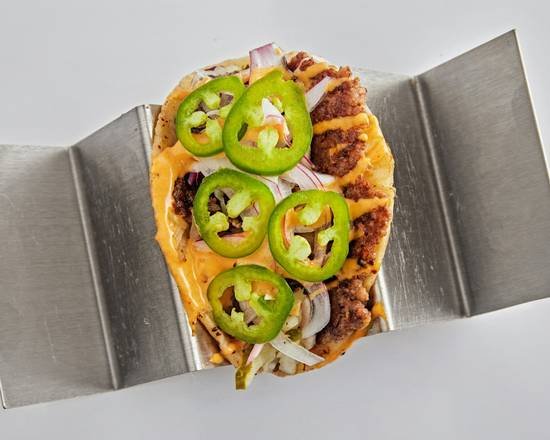 PLANT-BASED MEAT, PLANT-BASED AMERICAN CHEESE, PLANT-BASED SECRET SAUCE, PLANT-BASED FLOUR TORTILLA, HOUSE PICKLED RED ONIONS, CILANTRO, SLICED JALAPE?OS.